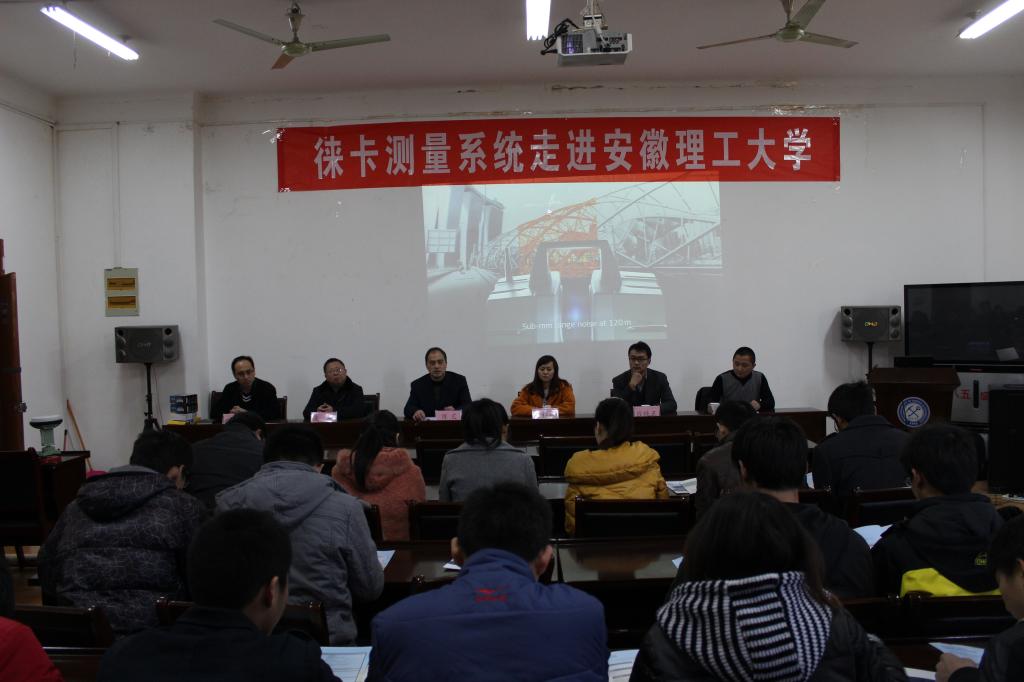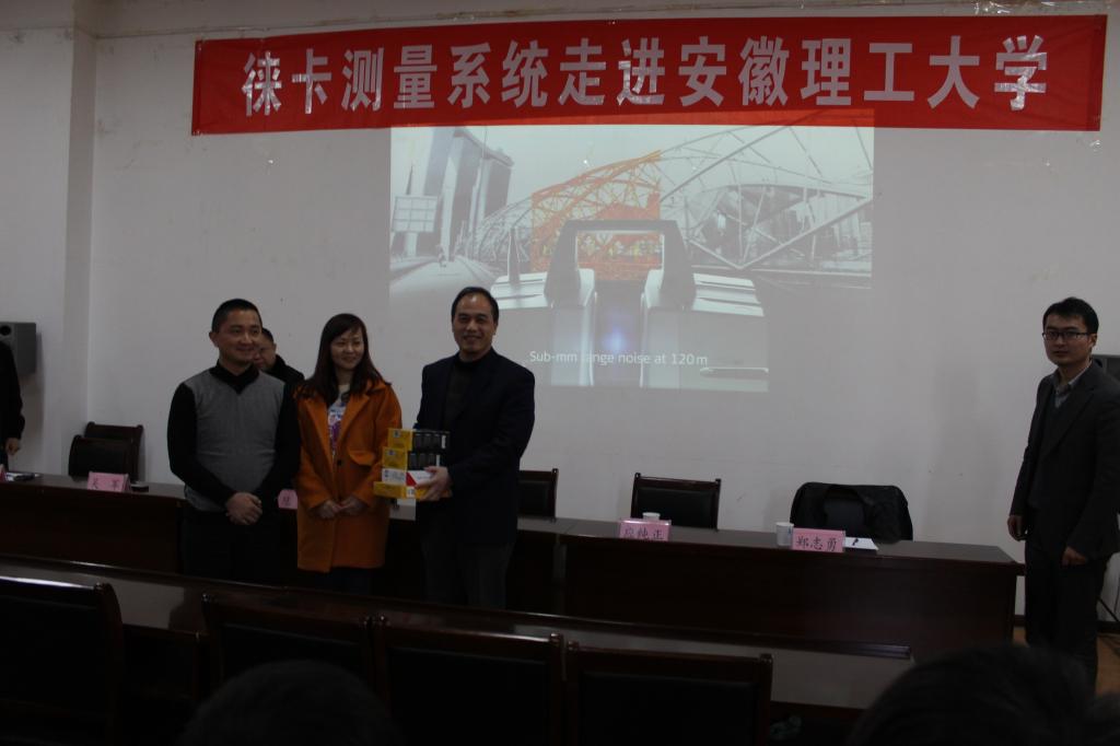 11月28日下午,徕卡测量系统走进安徽理工大学活动在测绘学院201会议室举行,活动第一阶段徕卡公司向测绘学院捐赠测距仪及望远镜等实验仪器,第二阶段由徕卡公司郑志勇经理向测绘学院师生作新型仪器产品应用报告。合肥徕卡公司的应纯正经理、郑志勇经理和测绘学院的领导班子参加了此次活动。会议由徐良骥副院长主持。
