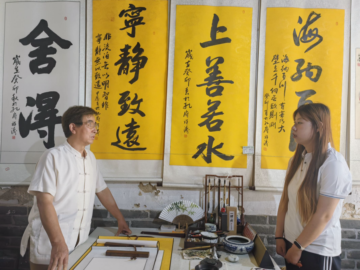 第二站团队来到了孔府,来探寻孔子生前印记,深入体会孔子伟大的儒家思想。在调研的过程中团队不仅对重光门、大堂、前上房等建筑的历史进行了学习,还对著名书画家、孔子第七十五代传人孔祥涛先生进行了采访。孔先生表示书法作为一种中国传统文化和美学,在世界上是绝无仅有的,每一幅好的书法作品同时兼具传统审美与作者的精气神。