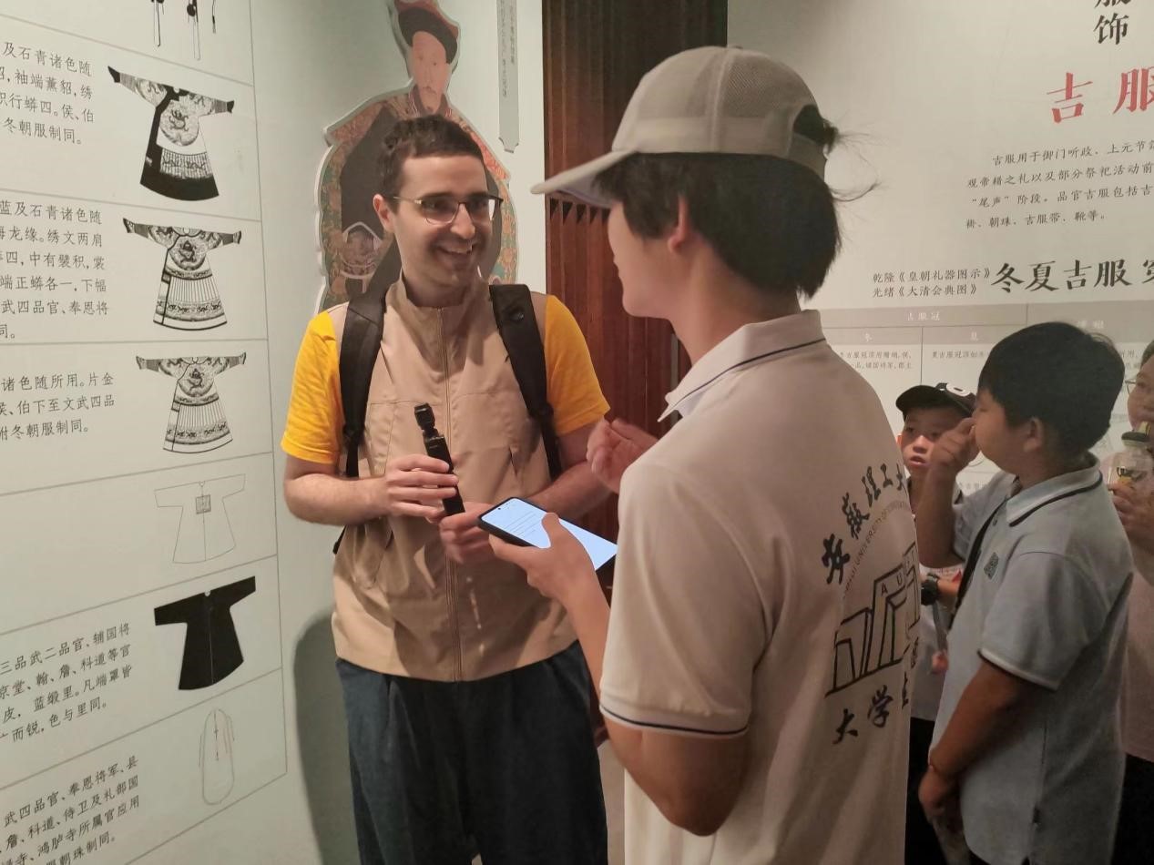 7月7日,团队成员们来到了孔子博物馆,共同探寻儒家文化的深厚底蕴和时代价值。馆中不仅展出了许多历史文物,还充分利用现代科技手段,为参与者们提供了丰富的互动体验。在参观途中,团队成员有幸采访到一位热爱中国传统文化的国外自媒体博主,他表示中国文化的丰富和博大精深令他非常震撼,他想让更多人了解并热爱中国传统文化,想通过自媒体的方式传播中华文化。通过与国外友人深入的交流,团队成员深深意识到向世界传播我国传统文化不仅是对中华文化的传承和弘扬,也是对全球文化交流与互鉴的积极推动。作为青年学子,更要担当时代责任彰显青春本色。