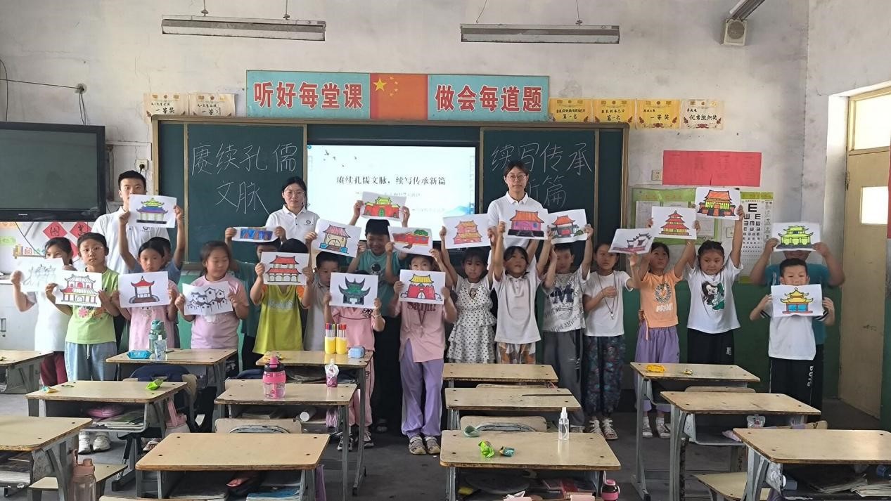 7月9日,团队成员们最终来到了肥城市马家埠小学,并将前几天访谈调研的内容进行整理,给当地的学生带来了一场红色儒家文化教育。团队成员向学生们介绍了什么是儒家文化、论语以及儒家文化的现实意义。接着团队成员用传统建筑填色、投壶等游戏让参与的学生更加深刻地了解到中国传统文化。讲座结束后,团队成员带领着学生们前往马家埠红色博物馆和民俗馆,重走红色足迹,追溯红色记忆,加强理想信念教育。在活动的最后,团队成员对几名小学生进行了采访,小学生们表示今后会更多参加关于弘扬中国传统文化的活动。