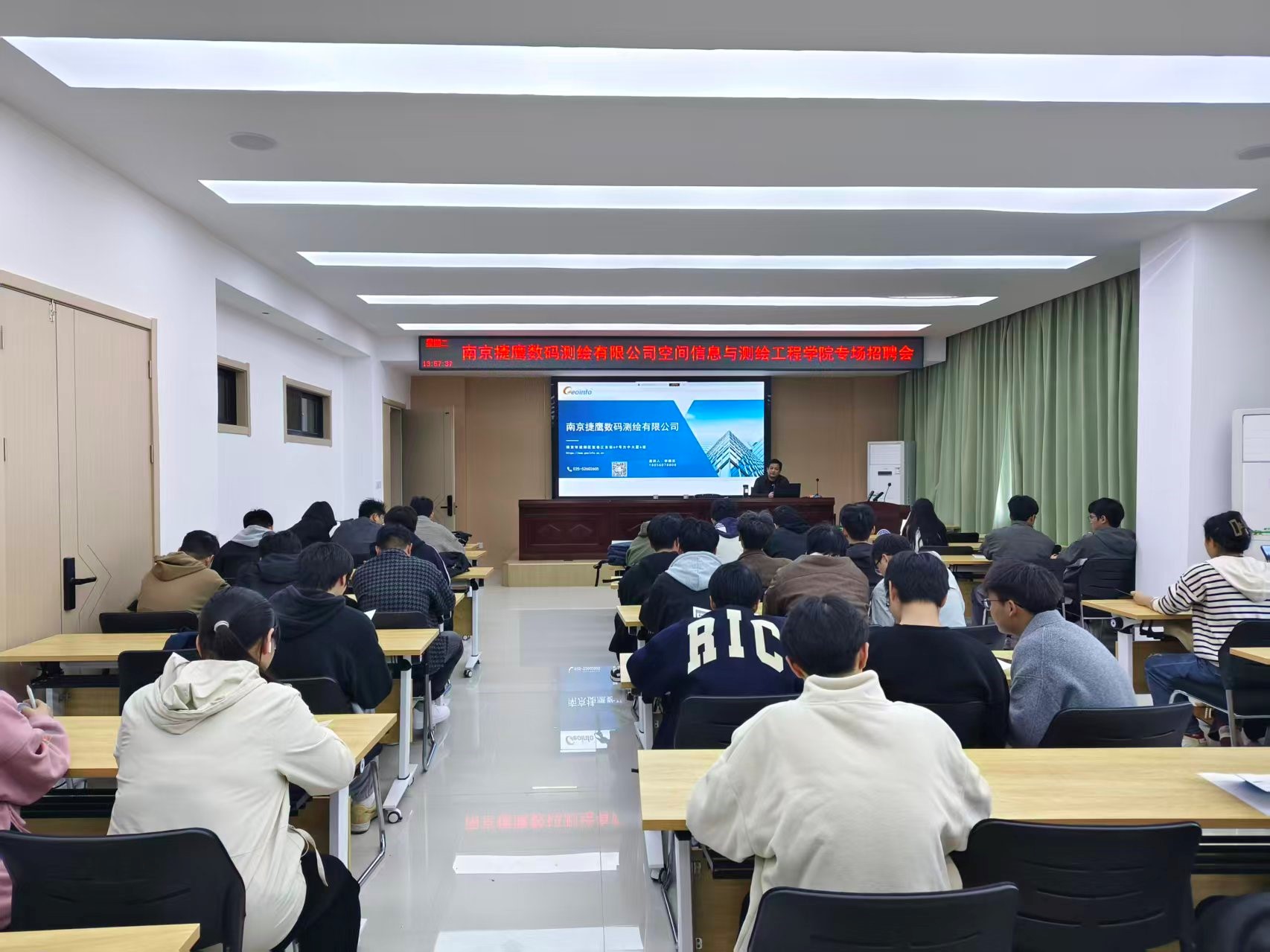为推进2026届毕业生高质量就业,11月11日下午,空间信息与测绘工程学院邀请南京捷鹰数码测绘有限公司在求本楼北204会议室举办专场招聘会。南京捷鹰数码测绘有限公司安徽区负责人李德志现场宣讲,空间信息与测绘工程学院、计算机科学与工程学院、数学与大数据学院40余名毕业生参加招聘会。