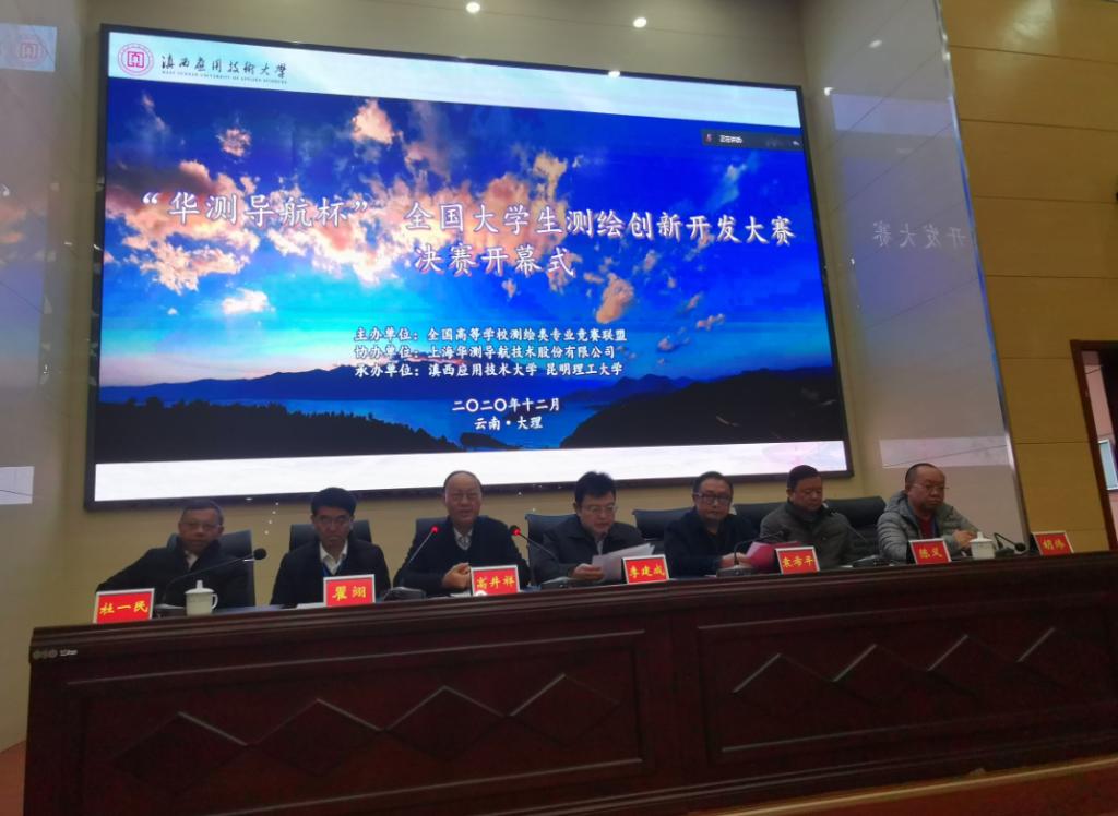 12月21日,“华测导航杯”首届全国大学生测绘创新开发大赛决赛在滇西应用技术大学成功举行。本次大赛由全国高等学校测绘类专业竞赛联盟主办、上海华测导航技术股份有限公司协办,滇西应用技术大学与昆明理工大学承办。教育部高等学校测绘类专业教学指导委员会、中国测绘学会教育委员会(简称“两委会”)主任,中国工程院院士、武汉大学副校长李建成教授出席开幕式并讲话。滇西应用技术大学党委副书记、校长袁希平教授,党委委员、副校长杜一民教授出席开幕式。“两委会”委员出席开幕式并担任评审专家,上海华测导航技术股份有限公司董事长、“两委会”副主任委员赵延平通过网络连线方式参与会议并作讲话。开幕式由中国矿业大学高井祥教授主持。空间信息与测绘工程学院副院长余学祥教授担任评审专家。