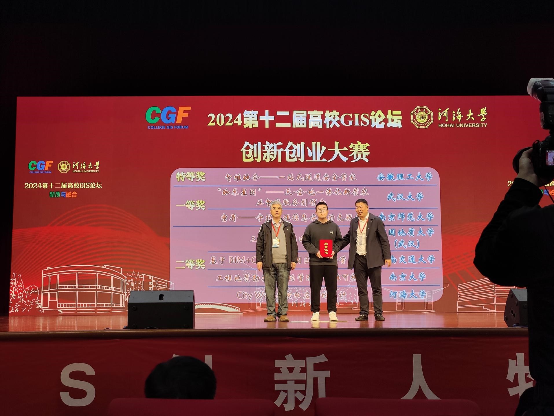 我校积极遴选组织学生,精心打磨培育项目,两个团队参加分论坛四:GIS融合创新与产业成长(创新创业大赛)决赛角逐。在名校荟萃、高手云集的决赛现场,《智维融合-一站式隧道安全管家》团队凭借独特的创新思维、缜密的创业逻辑、精彩的汇报答辩脱颖而出,荣获创新创业大赛唯一的特等奖;《冠舟-智慧环境监测专家》团队荣获创新创业大赛三等奖。