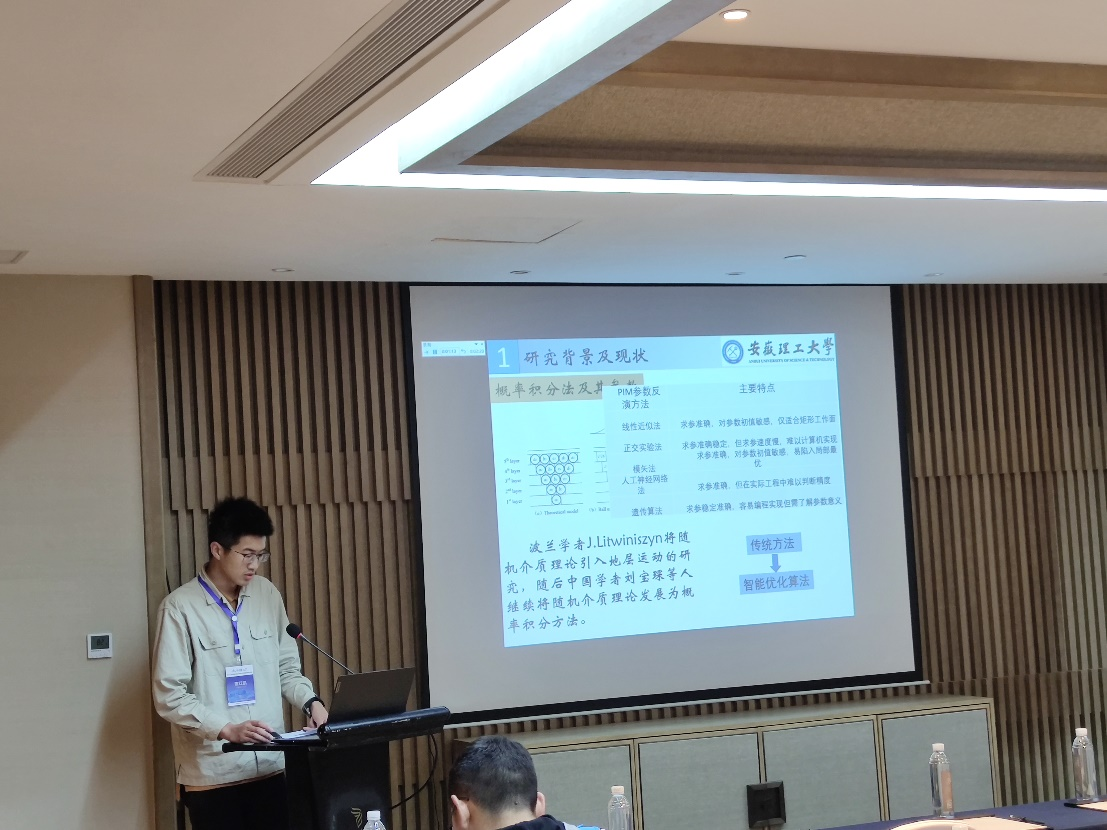 5月15日上午,在中国矿业大学副校长周福宝教授、中科院武汉岩土所所长李海波教授、山东大学副校长李术才院士致辞后,本次会议正式开始,会议以“岩石动力学与深地工程”为主题,与会专家围绕岩动特性测试新技术与新方法、冲击与岩爆的机理及防控、爆炸及动载破坏的理论与技术和岩石动态破坏机理与数值模拟等议题开展了100余场报告。我院郭庆彪副教授和陈红凯硕士研究生分别做了“新建高等级公路穿越煤矿采空区安全性研究”与“基于改进乌鸦搜索算法的概率积分参数反演研究”的报告,并在现场与行业专家进行了热烈讨论。