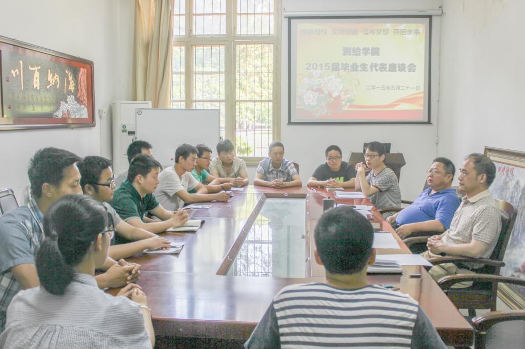 5月21日下午,测绘学院2015届毕业生座谈会在学院102学术报告厅举行。学院党委书记陈艺、党委副书记吴军出席了本次座谈会,来自3个专业的17名毕业生代表参加了座谈会。